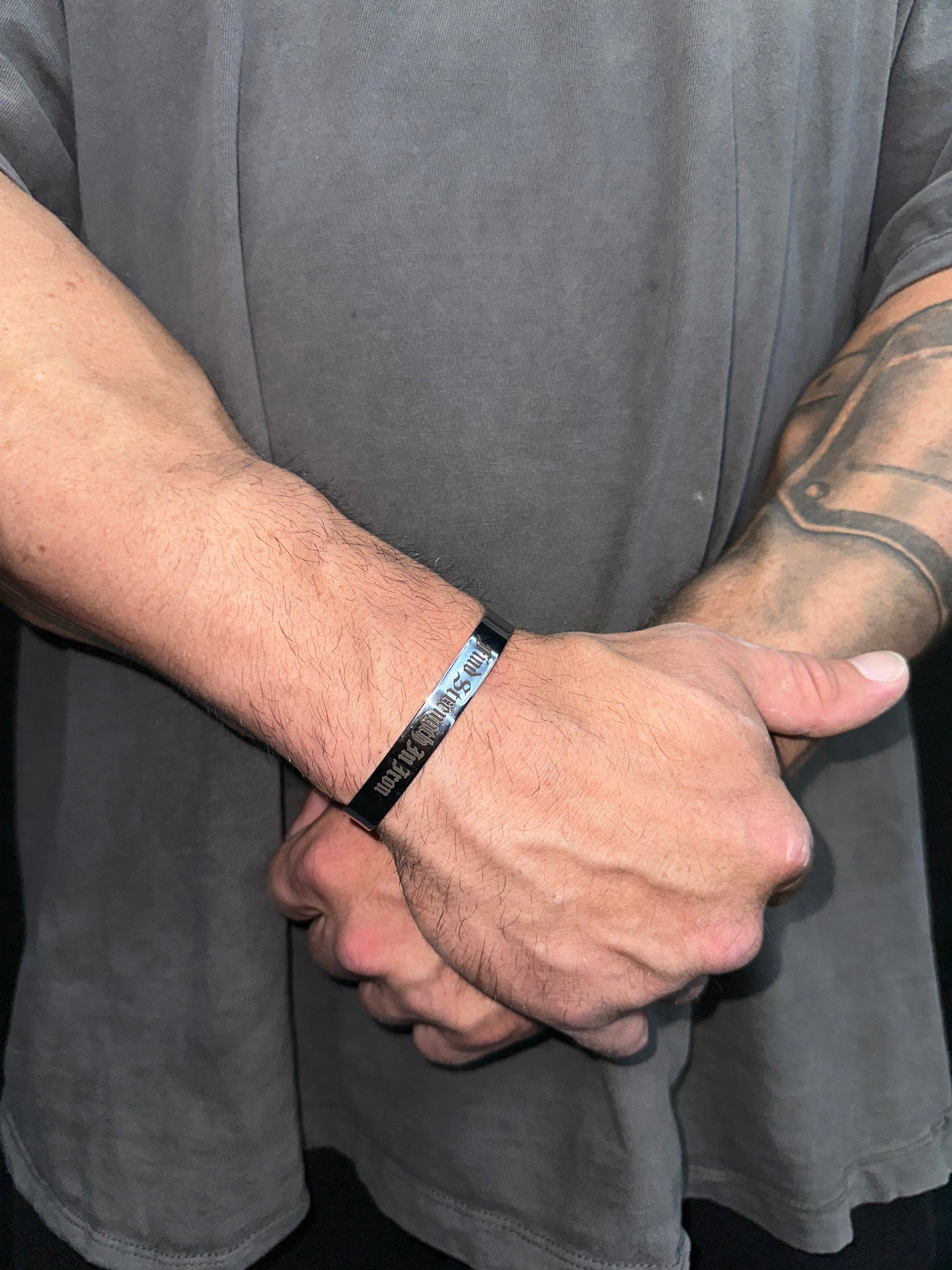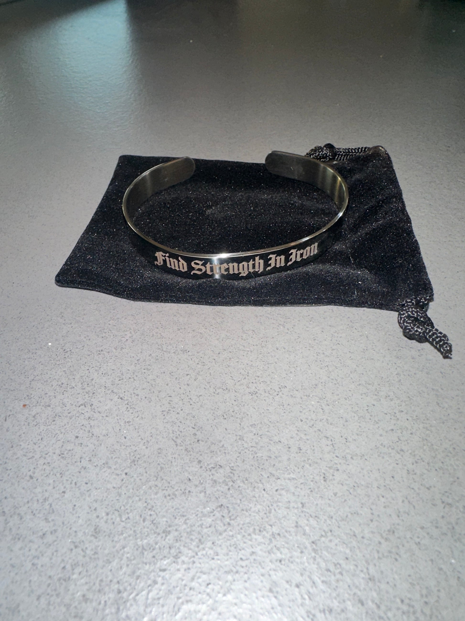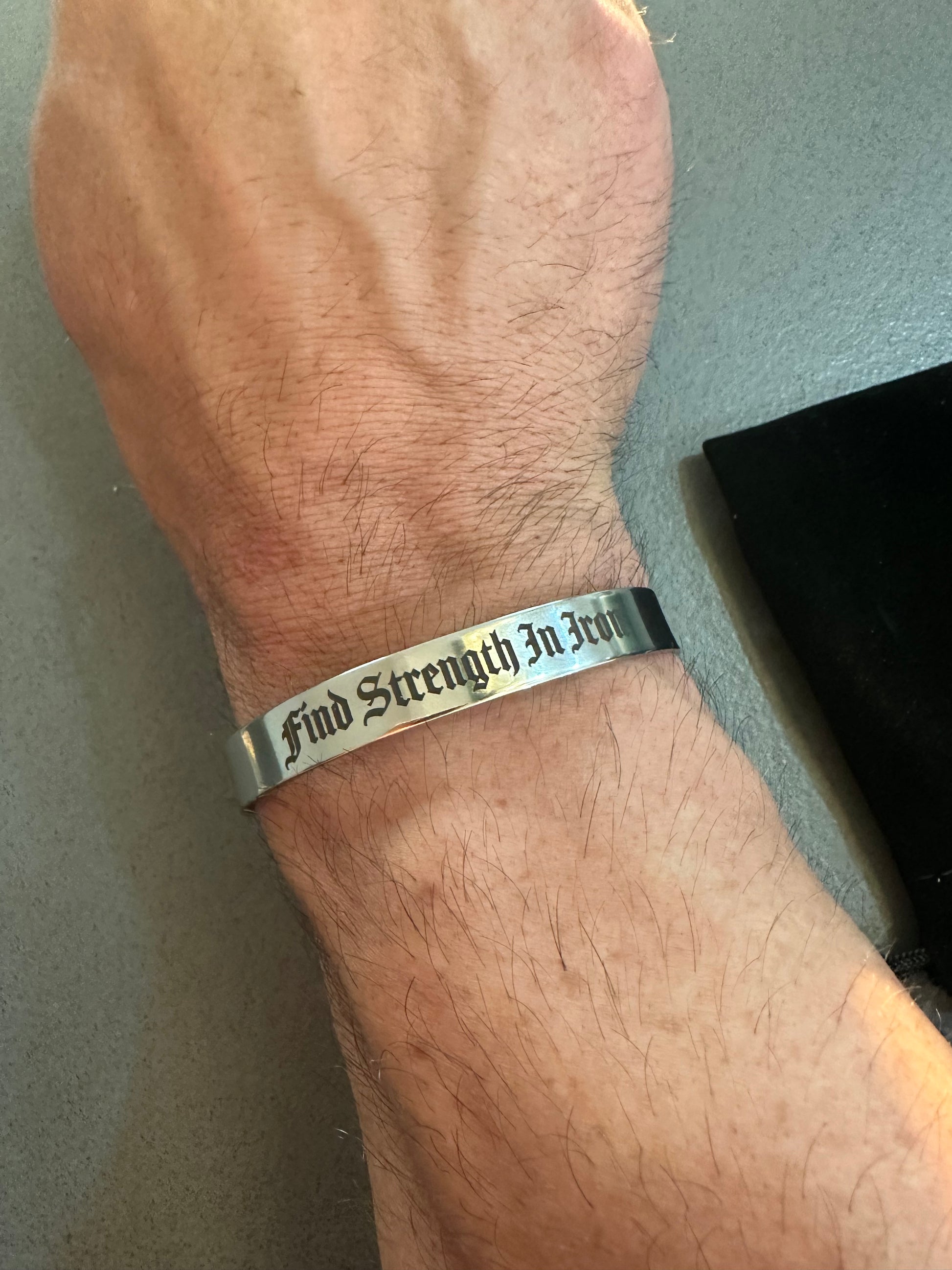 Each bracelet is engraved with the phrase: “Find strength in iron.”